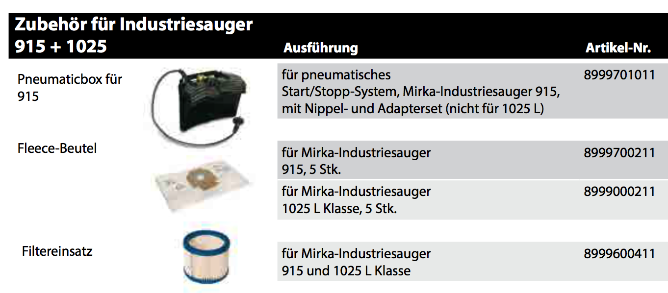 Der Mirka Industriesauger 1025 L eignet sich sowohl für trockene, als auch für nasse Anwendungen (Bei nasser Abwendung bitte Staubbeutel entfernen).
