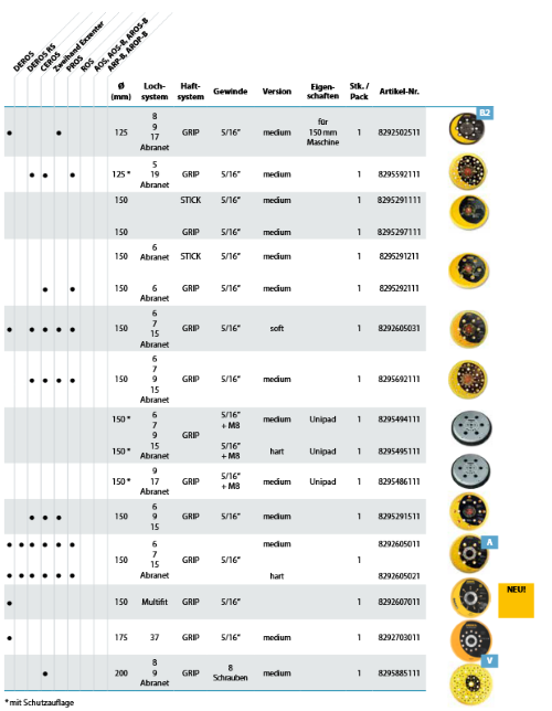 Der Schleifteller MF wird mit einer speziellen Schutzauflage MF geliefert, die als Schutzschicht zwischen dem Schleifteller und der Schutzauflage fungiert. Die Schutzauflage verlängert die Lebensdauer des Schleiftellers, indem er Abnutzung bei kontinuierlichen, aggressiven Schleifarbeiten verhindert. Die Schutzauflage kann auch separat erworben werden.