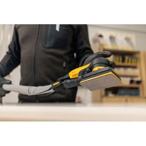Der bürstenlose Motor gewährleistet konstante Geschwindigkeit und müheloses Schleifen. In Kombination mit einem Mirka-Staubsauger ermöglicht der Mirka DEOS effizientes staubfreies Schleifen. Bluetooth-Konnektivität integriert sich nahtlos mit der myMirka-App für Vibrationsüberwachung und zusätzliche Einstellungen.