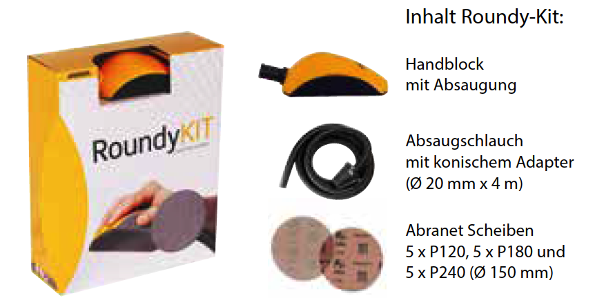 Handschleifer Roundy-Kit mit Absaugung 150mm 34-Loch Mirka