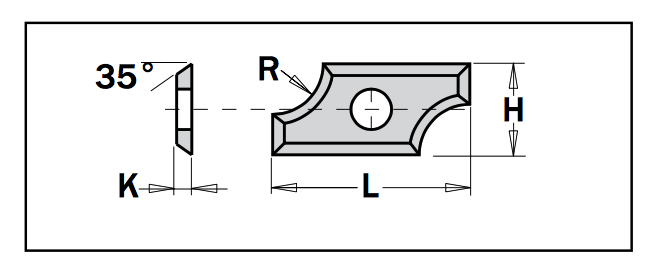 Legende: L=Länge; H=Höhe; K=Stärke; R=Radius;
