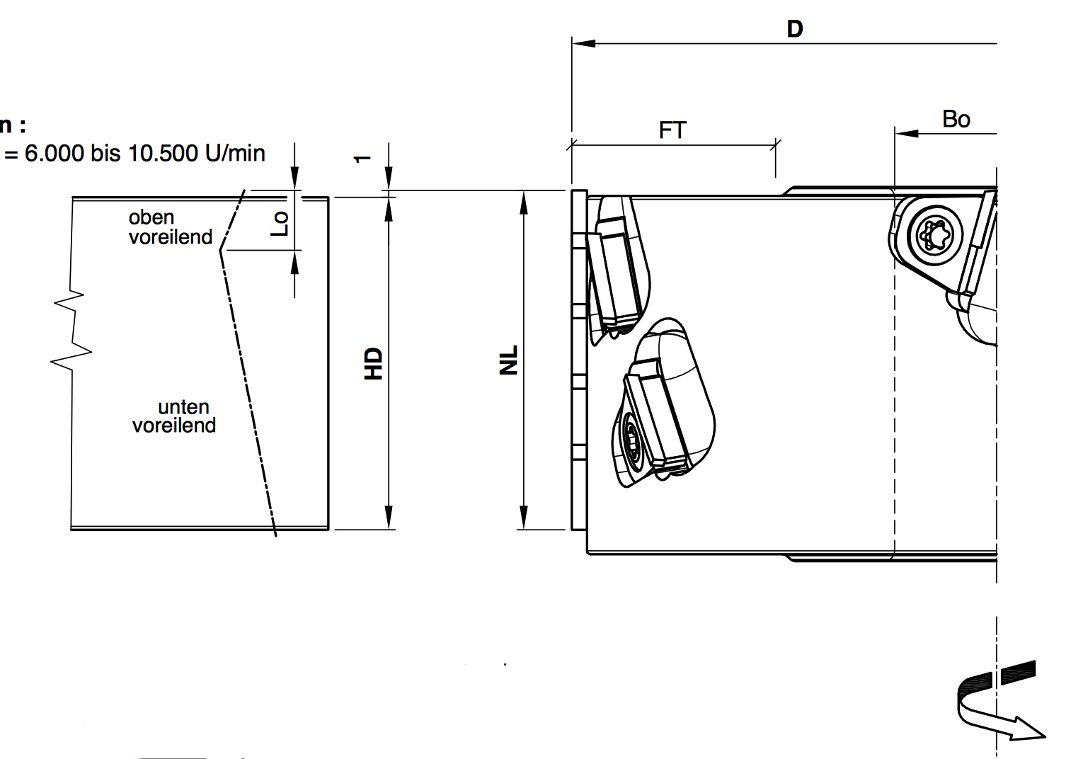 Legende: D=Durchmesser; SB=Schnittbreite; BO=Bohrung; Z=Zähnezahl